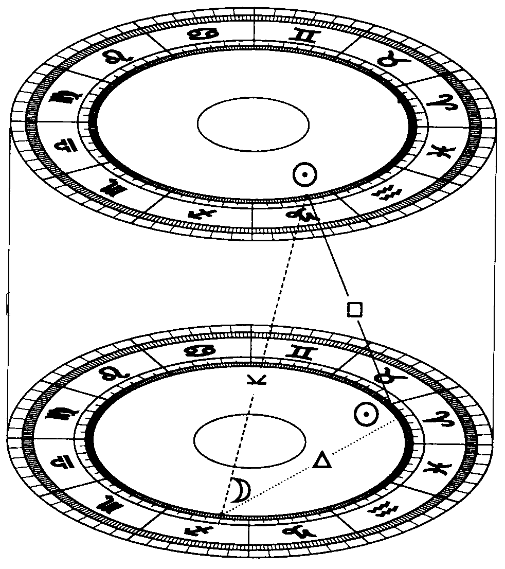 Однако конфликты между партнерами (явные и скрытые), их взаимная неудовлетворенность, невозможность, несмотря на все старания, найти общий язык, и прочие проблемы пары всегда носят объективный характер в том смысле, что являются манифестацией напряжения в парном эгрегоре, которое может не иметь отношения к недостаткам партнеров, а просто-напросто означать, что они делают что-то не соответствующее его программе, или, наоборот, упорно не делают того, что он от них ожидает. Сложность здесь заключается еще и в том, что в этой игре трех лиц - два партнера и парный эгрегор - мнения о том, что должен делать каждый из участников, часто сильно расходятся, и модный нынче идеал "равенства" в партнерстве на практике не может служить конструктивным ориентиром. Что ни говори, все-таки мужчины отличаются от женщин, и не только в анатомическом плане. Впрочем, взглянув на любую синастрическую карту, легко обнаружить, что асимметрия отношений будет правилом, а не исключением: ассиметричны по большей части как синастрические аспекты положений (планеты одного из партнеров в домах натальной карты другого), так и синастрические дуговые аспекты (дуги между планетами, одна из которых расположена в натальной карте одного партнера, а вторая - другого). Это означает, что если Солнце первого партнера попадает в пятый дом второго, то Солнце второго совершенно необязательно будет в пятом доме первого, а синастрическое соединение Марс-Венера не предполагает непременного синастрического соединения Венера-Марс в той же синастрии.