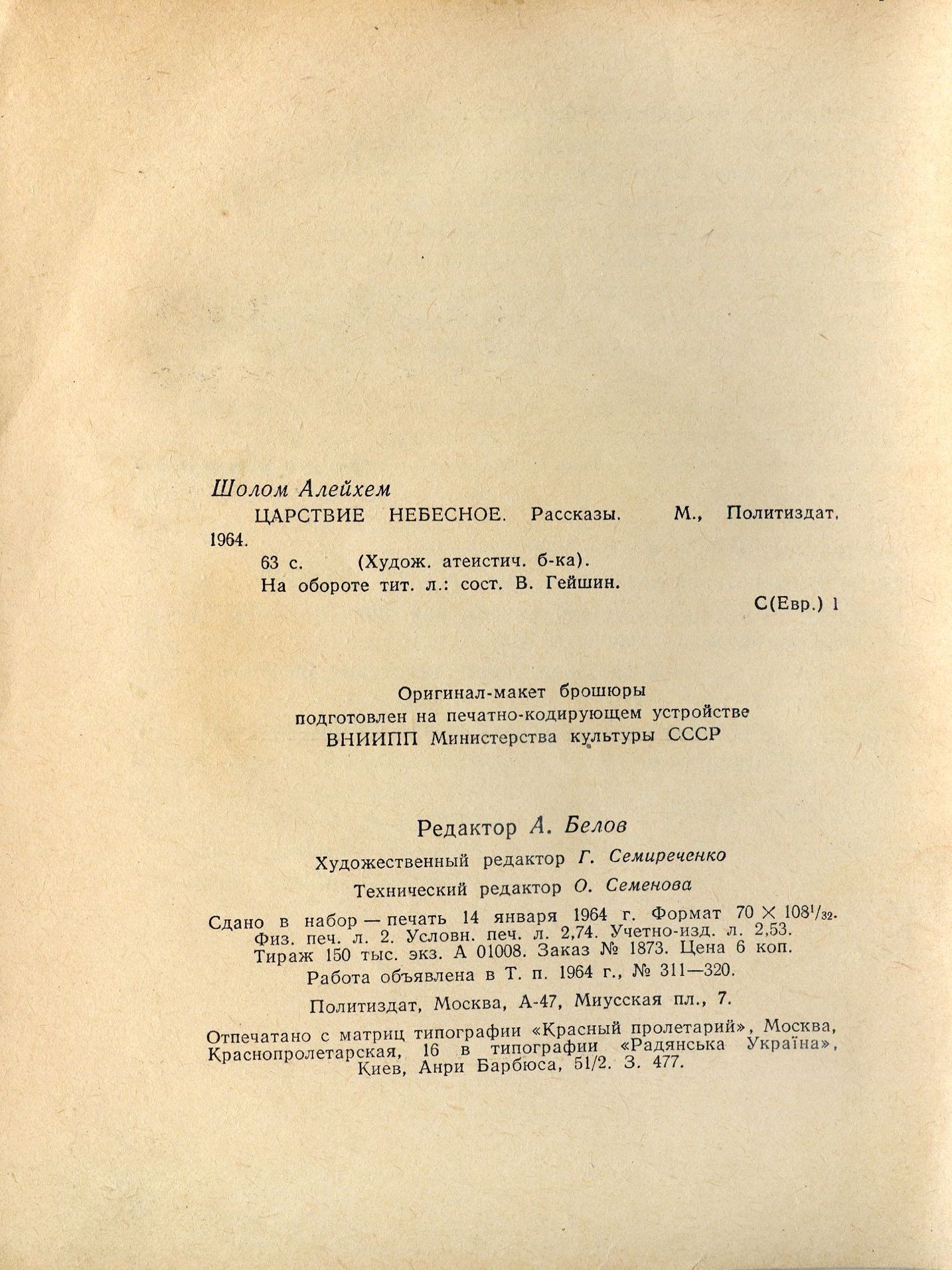 ЦАРСТВИЕ НЕБЕСНОЕ. Рассказы. М., Политиздат. 1964.