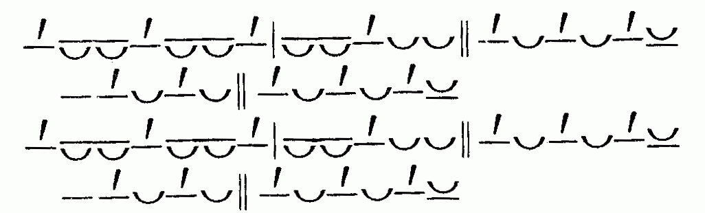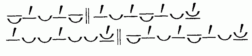 стопа в три музыкальных единицы (моры) сочетаются со стопами в четыре таких