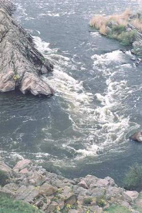 низкую воду могут торчать камушки), потом гряда стоячих волн - очень