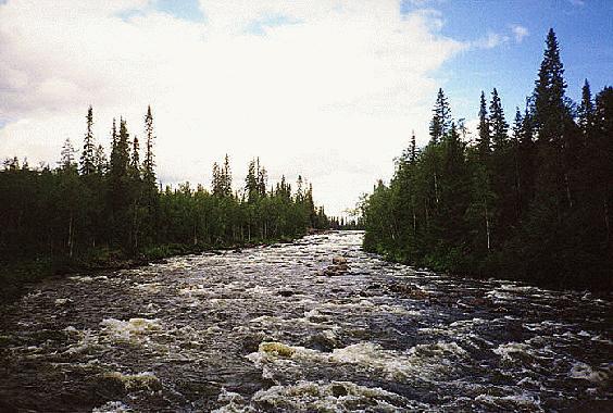 как потом оказалось. Где-то через 20 км. начались пороги.