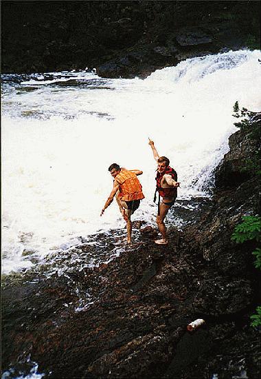 б)при прохождении свирепых и мощных порогов на байдарке, главное -