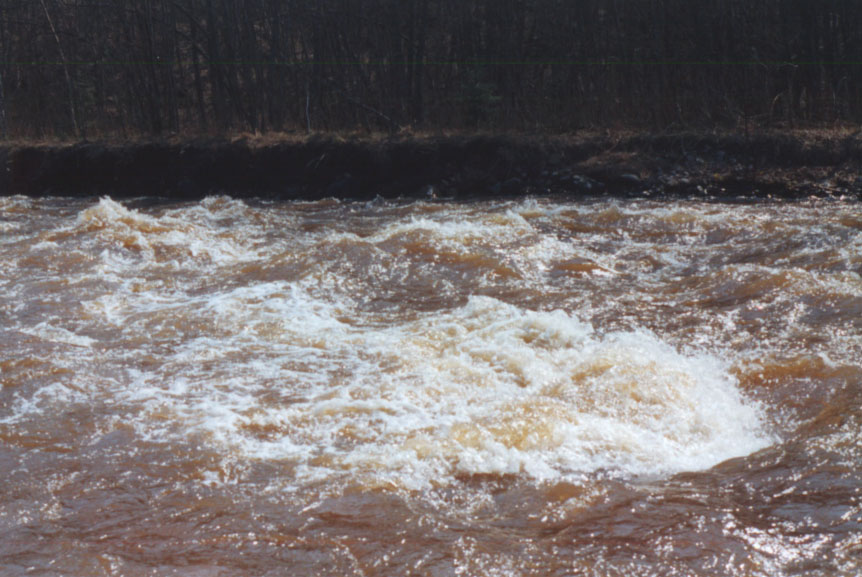 Поскольку "Лазутчик" был практически готов к дальнейшим подвигам, я устремил тоскующий взор в сторону следующего участка... Он был прямой, как стрела (на Поломети это редкость), поэтому вода разгонялась на нем до сверхзвуковых скоростей. Если есть цвет белее белого, то это цвет именно той воды. На внутреннем жаргоне ТНБ такие участки называются словом из четырех букв, первая "ж". Что было бы с байдаркой и со мной, если бы нас пронесло еще хотя бы метров пять... Будь у меня достаточно фантазии, чтобы это представить, я потерял бы счет "Оскарам" за сценарии для фильмов ужасов.