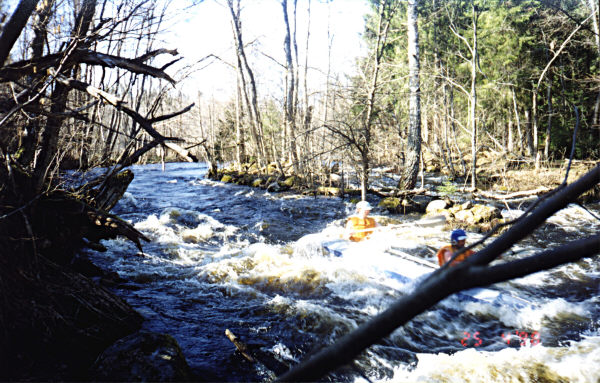 перед ним и в правой протоке - завал. В левой протоке - сильный прижим к