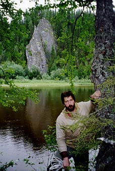 С утра все проспали. Встали около девяти утра. Настроение очень нерабочее. Васи очень тщательно собирали "Егеря". В результате вышли в 15.15. Река изобилует перекатами и порожками. Грести приходится очень мало. Вс? утро после дождя было яркое солнце.